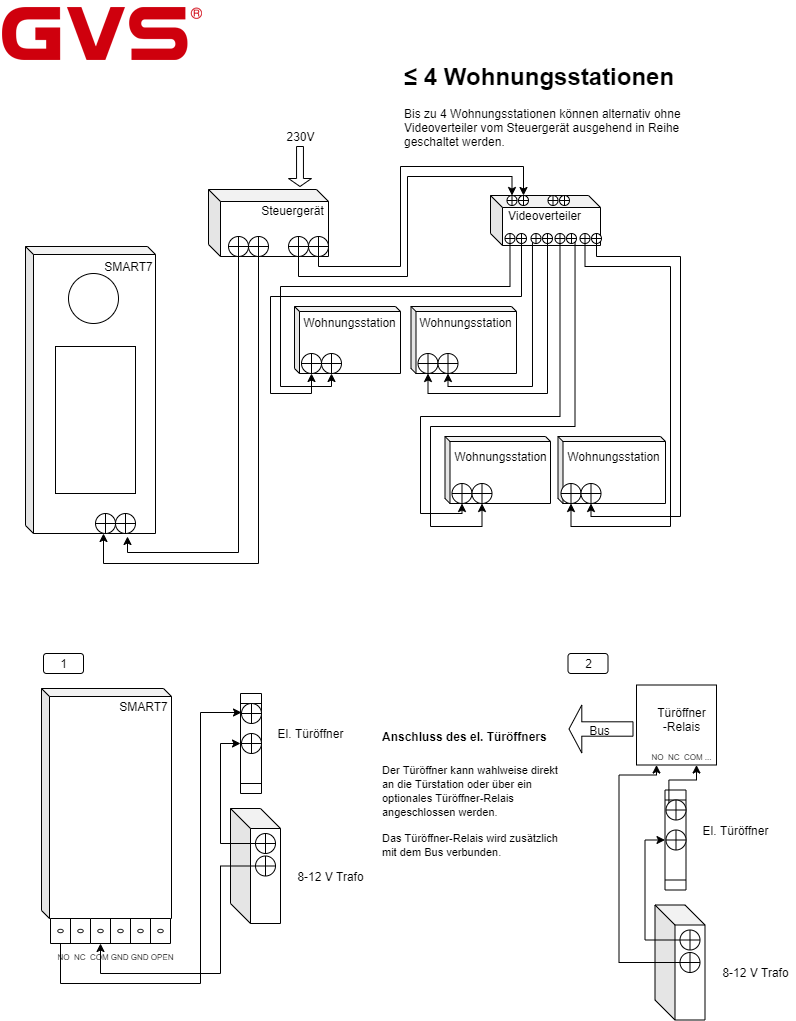 SMART7 - 2-Draht Video Türsprechanlage, 1 Familienhaus-Set, Türstation mit 7" Touchscreen - AVS7801
